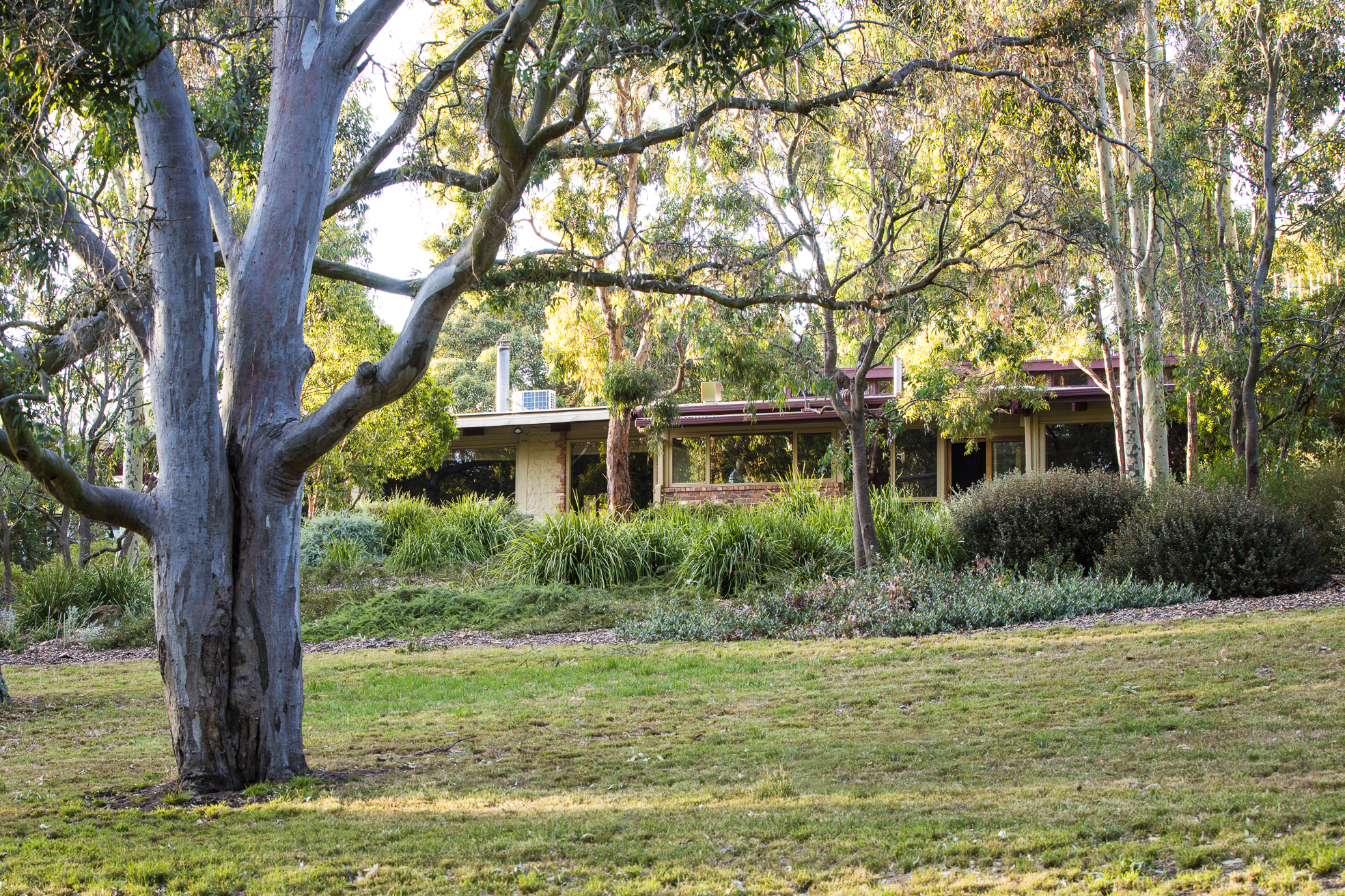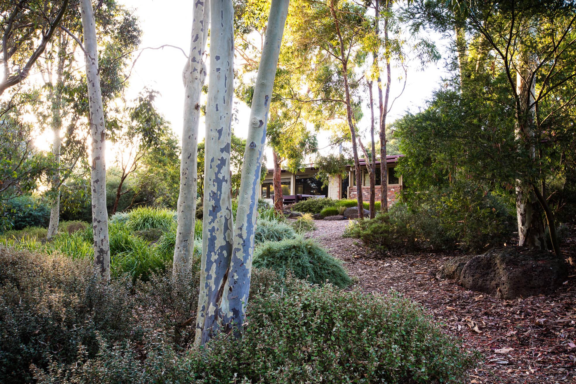 This six-acre garden was one of Sam’s first projects when he began his practice in 1999. The brief for the new design was to incorporate the large stand of remnant Eucalyptus camaldulensis that shade three billabongs in the front of the property. Sam created elevations with basalt boulder outcrops using soft curving lines. Generous sized moundings were shaped and planted densely to create layers of contrasting foliage; Acacia, Banksia, Grevillea and Rhagodia species were used extensively and selected as appropriate for a region with low rainfall. A wine cellar was built into an embankment to merge seamlessly with the basalt outcropping. Castlemaine slate paving was used around the house and for outdoor living areas providing soft transition between house and garden. Red Gums has opened to the public several times over the years with both Australian and Victorian Open Garden Schemes.