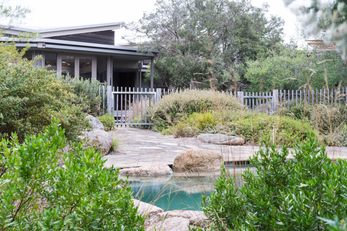 An iconic piece of Australian architectural history, the Salter house was designed by Walter Burley Griffin and his wife Marion Mahoney Griffin in 1924. In 2018 the building was sensitively restored providing us with an opportunity to bring back the original ethos of the house and re-establish the garden in line with the Griffin approach. Genius loci is embodied in the large ancient red gum in front of the house. This majestic remnant tree seemed to be protecting the building from the destructive forces of “progress” encroaching on all sides. We converted an existing formal pool into an underground water tank reclaiming valuable outdoor living space. Castlemaine slate was purposed for the paths and outdoor living spaces making a gentle connection back to our clients’ and the Griffins’ love of the natural environment. We situated a small pond and waterfall in basalt at the foot of the house as a place for reflection under the branches of the redgum. The boundaries, softened with brush fencing and layered plantings, envelope this bush sanctuary hidden between the towering walls of neighbouring properties.